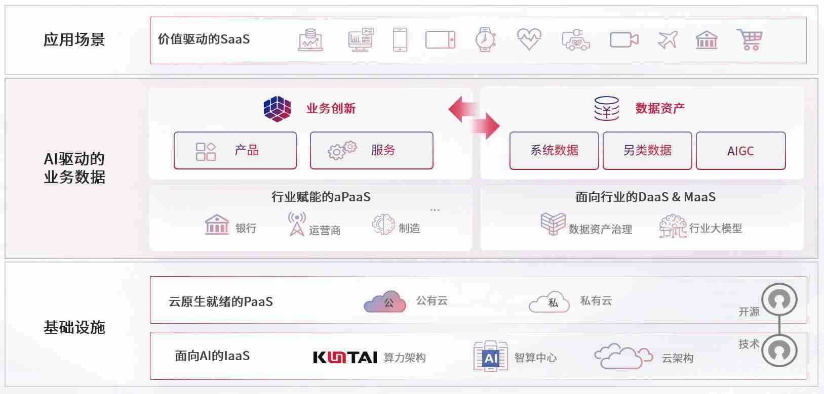 数字时代,,围绕企业数字化转型的关键要素,,,,V8娱乐数码开创性的提出数云融合战略和技术体系框架,,着力在云原生、、、、数字原生、、、AI原生和信创产业上架构产品和服务能力,,,,为处在不同数字化转型阶段的快消零售、、、、汽车、、、、金融、、医疗、、、、政企、、教育、、、、运营商等行业客户提供泛在的敏捷IT能力和融合的数据驱动能力,,构建跨界融合创新的数字业务场景和新业务模式,,助力企业级客户建立面向未来的核心能力和竞争优势,,全面推动社会的数字化、、、、智能化转型升级。。。